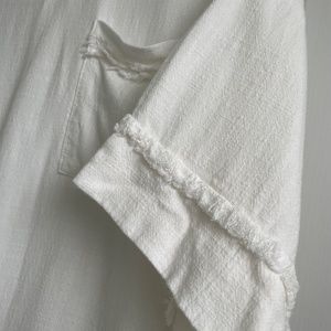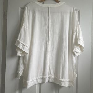 NWOT, White Linen Blend White Birch Relaxed Fit Blouse with Fringem Size Small