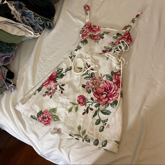 Super cute floral dress I bought and never wore, has a zipper back + stretchy back and lace up side details