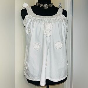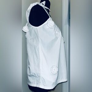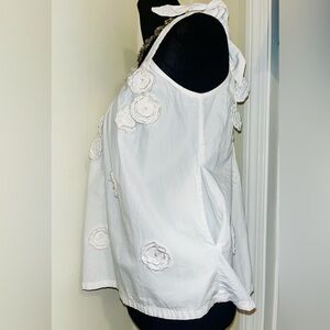 Elegant white top by Gretchen Scott Designs. Ideal for versatile styling. BNWOT!! never worn. I just took to the cleaner because was in my closet never worn, but the cleaners removed the tag!!!! why? I have no idea. Nevertheless this super cute top is very new never worn. Has pockets and adjustable 💯 cotton tie up straps. Great for spring and summer casual wear with any style bottom.