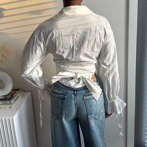 NWOT White Wrap Blouse V Neck Long Sleeve