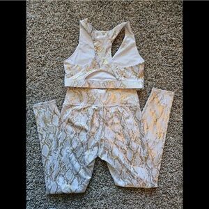 NWOT White and gold Snake Print Fabletics Set - Size Large