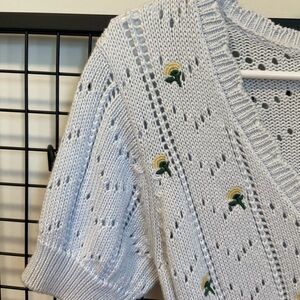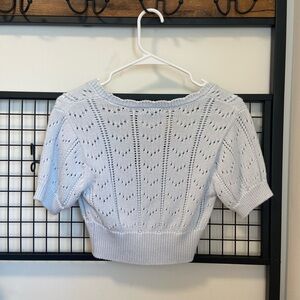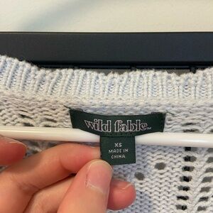 Women’s Wild Fable cap sleeve sweater. Sweater is pale blue with beautiful embroidered floral pattern. Buttons up the front. Size XS. Smoke free home!