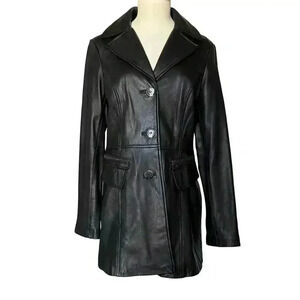 NWOT Wilsons Leather Black Button Front Lamb Jacket Pockets Size S