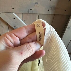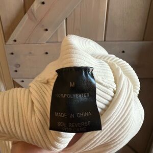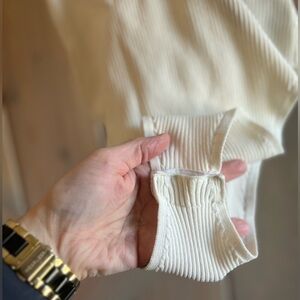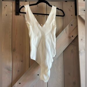 Never worn- tags removed to wash it as it was dirty from storage. Back to perfect condition. Ivory ribbed bodysuit with snap crotch. V neck and back, wide straps.