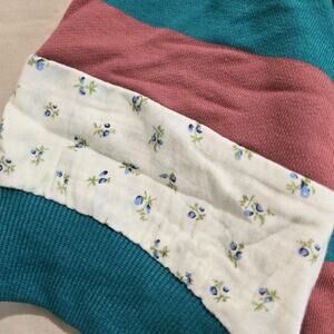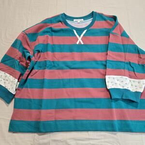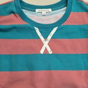 NWOT Wishlist Teal Striped Sweatshirt Floral Contrast Sz M Oversized Boxy