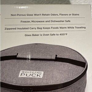 NWOT Wolfgang Puck 9 inch Glass Pie Dish W/ Insulated Carry Bag New in box