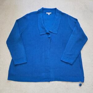 NWOT Woman Within 2X (26-28) 1 Button Long Sleeve Knit Cardigan Collared Blue