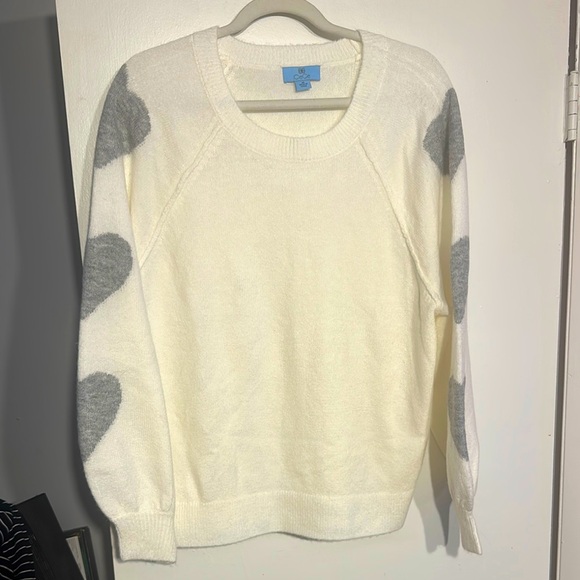 NWOT. Woman’s CeCe Cozy White and Gray Sweater with hearts on sleeves. Size M