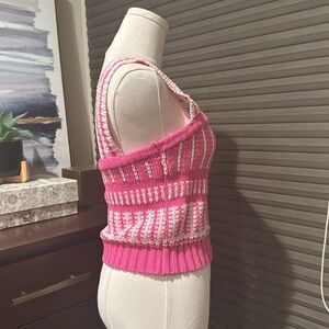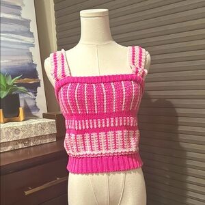NWOT Woman's Lush Pink & White Stripe Sweater Tank Top. Size Small