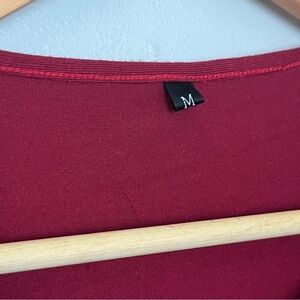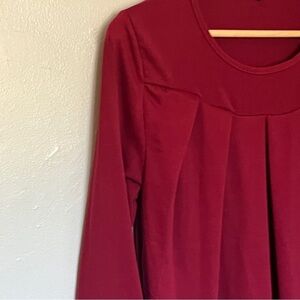 NWOT Women Pleated Flowy Top 3/4 Roll Sleeve Casual Loose Blouse Red Medium