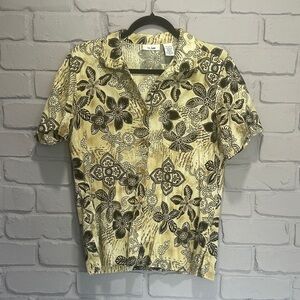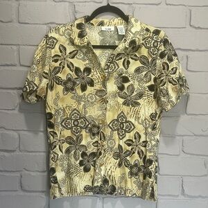 NWOT Women top Lee Beige and Black Floral Shirt size M