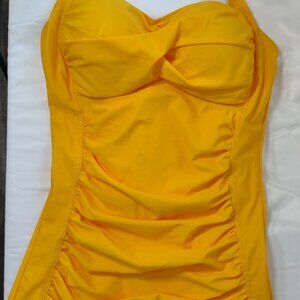 Lovely Daffodil Color One Piece Swimsuit W/ Twist front Ruched & gathered.