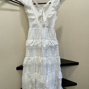 NWOT!! Women’s 4 Tiers White Lace , Opened back Maxi Dress Size XS