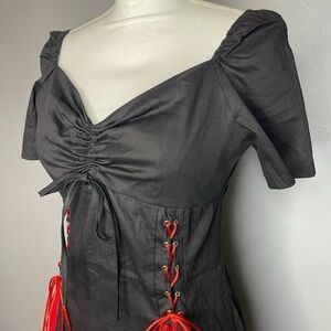 NWOT Women’s Medium Renaissance Short Sleeve Medieval Dress Square Neck Lace Strappy Vintage Party Gowns dress lolita
