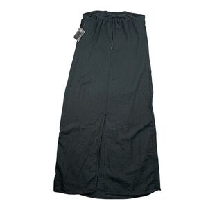 This NWOT Women's Abercrombie & Fitch halter maxi dress in size S features a solid black color, sleeveless design with a strapless style, perfect for warm weather. The dress is made of machine washable polyester jersey fabric with a pullover closure and removable halter straps for added versatility. With its long length and stylish maxi design, this dress is a chic and easy-to-wear option for any casual or semi-formal occasion.
