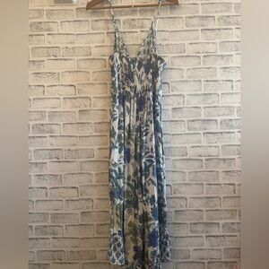 NWOT Women’s Angie floral tropical sleeveless calf length jumpsuit romper Small