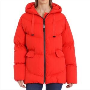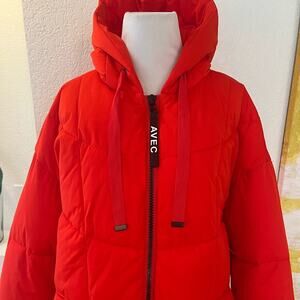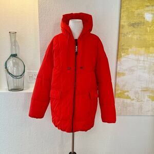 NWOT Women's Avec Les Filles Hooded Cozy Duvet Puffer in Red Poppy - Sz L