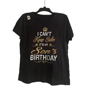 NWOT Women's Black T Shirt 'I Can't Keep Calm It's My Son's Birthday' Size Large