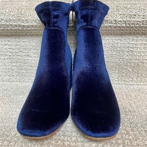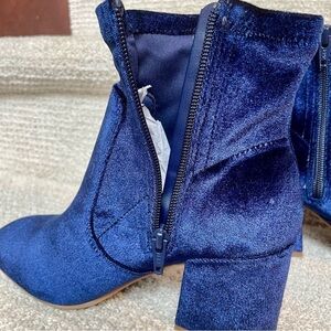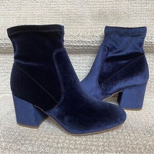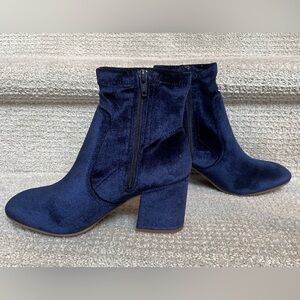NWOT Women's Blue "Suede" Ankle Block Heel Boots Zip Elastic Size 6 Medium