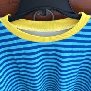 NWOT Women’s Bright Blue Striped Top With Yellow Trim Size XL