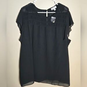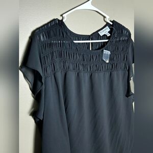 NWOT Women's Carmen Marc Valvo Black Flutter Sleeve Blouse, Size 2X