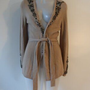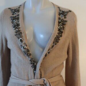 NWOT Womens Escada 100% Cashmere Beige Belted Cardigan W/Beads 38 EUR/US M