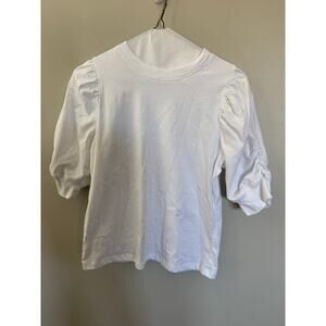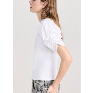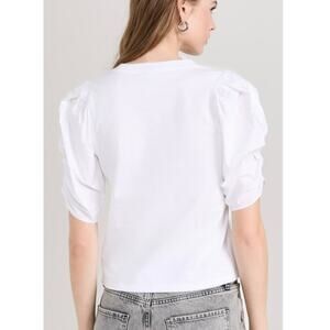 NWOT Women’s FRAME Denim Pleated Puff Sleeve Tee in White SZ S
