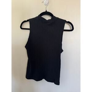 NWOT Women’s FRAME Denim Rib Sleeveless Tee in Black SZ S