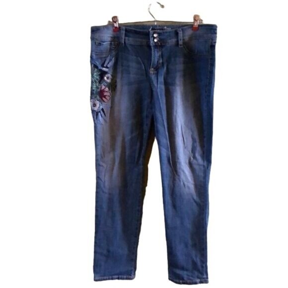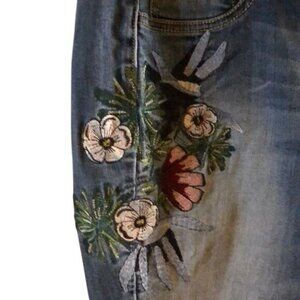 These NWOT (New Without Tags) Women’s INC embroidered floral jeans are a stylish addition to any wardrobe. Featuring intricate floral embroidery, these medium wash jeans add a touch of femininity to your casual look. The light distressing offers a trendy, worn-in vibe without compromising the classic denim feel.