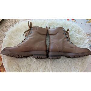 NWOT Women's J.Jill Dakota Luxer Hiker Dark Camel Lace-Up Ankle Boots, Size 8 M