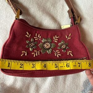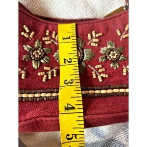 New Without Tags Women’s Johnnie & Frankie Boho Canvas Embroidered Beaded Handbag. Maroon Color, Leather Straps. Inside Small Zippered Pocket. Zippered Top Closure. Smoke Free Home. #bohohandbag #womenspurse #bohostyle #canvaspurse #embroidered