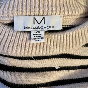 NWOT Women's Magaschoni Black Tan Stripe Pullover Crew Neck Sweater LARGE