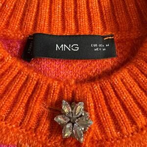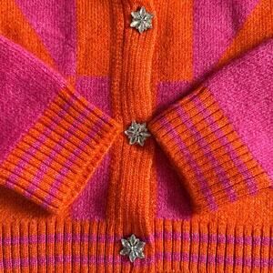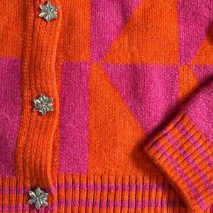 NWOT Women’s Mango Orange Fuchsia Cardigan Sweater Jewel Button Size Medium