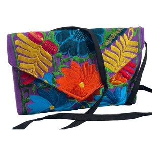 NWOT Women's Multi-Colored Floral Print Embroidered Clutch W/ Shoulder Strap