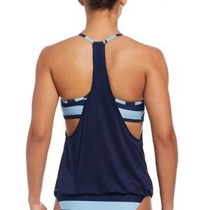 NWOT Women's Nike Blue Stripe Layered Tankini Swim Top Size Large