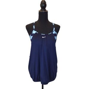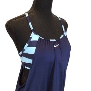 Women's Nike Blue Stripe Layered Tankini Swim Top Size Large. New without tags. Plastic barbs still attached. Tags were lost, but my daughter never wore it. Just tried on. From smoke free home.