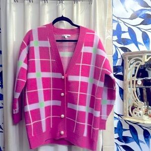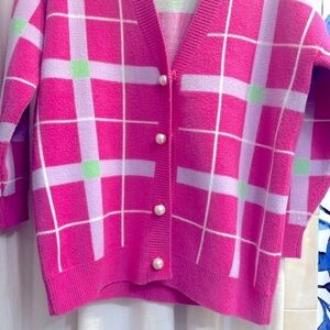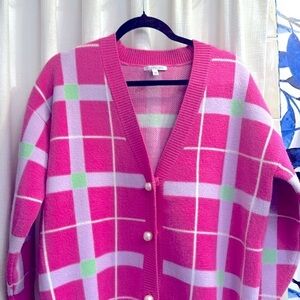 NWOT Women’s OLIVIA RUBIN Cecily Check Knitted Cardigan - Pink Size XS