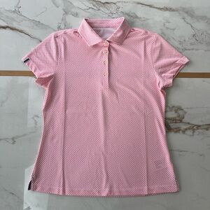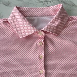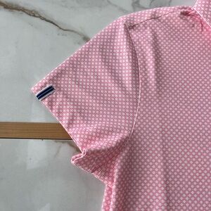 Stylish pink polo shirt with a subtle pattern. Perfect for casual wear.