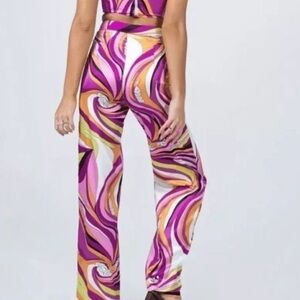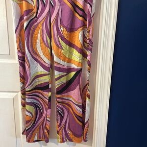 NWOT Women’s Princess Polly Pink Retro Print Polyester Wide Leg Pants Size 10