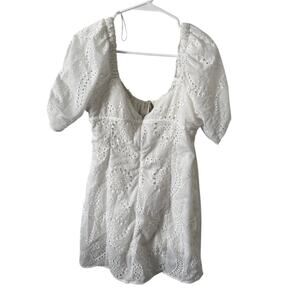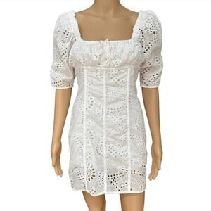 NWOT Women's Size M All In Favor Nordstrom Medium White Lace Eyelet Mini Dress Milkmaid Style Graduation Wedding Bachlorette