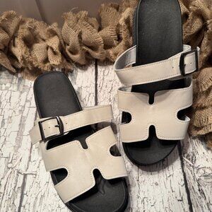 NWOT Slide on sandals Lug sole Cream, black Size 9