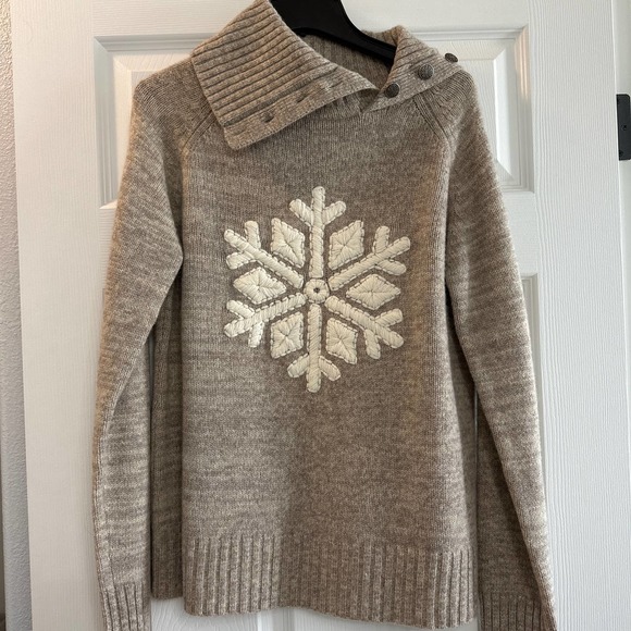 NWOT Womens Sundance Stratton Cream Wool Snowflake Sweater Split Cowl Neck Large