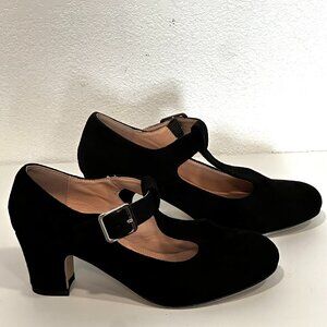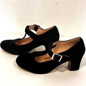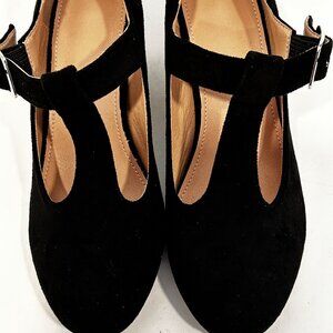 NWOT Womens T-Strap Mary Jane Heels Black Faux Suede US Size 8 Wide Width Eur 39