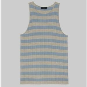 NWOT Women’s Theory Classic Stripe Tee in Khaki/Eggshell Blue SZ M