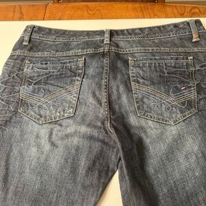 Elevate your wardrobe with these stylish Women's Tommy Hilfiger Size 14R Straight Leg Jeans. The medium wash and classic fit make them a versatile addition to your collection. The jeans feature a zipper closure, and accents that add a touch of sophistication.