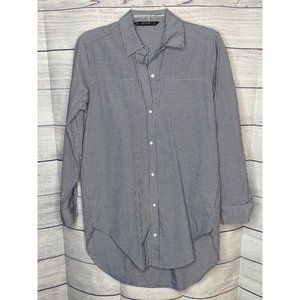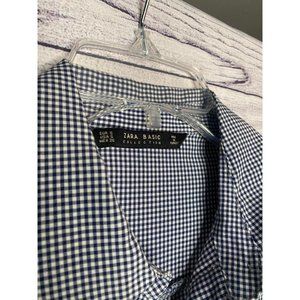 NWOT Women's ZARA Basic navy bluee gingham button down hi/lo blouse size small