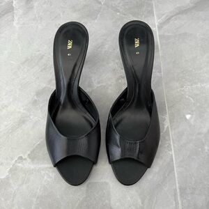 NWOT Women’s Zara Leather Mule Slip On Heel Open Toe Sandals UK 8 EU 41 1303/210