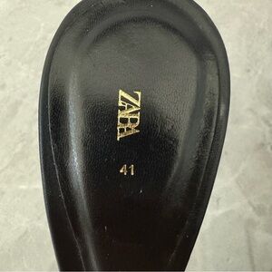 New without tags - NWOT Women’s Zara Leather Mule Slip On Heel Open Toe Sandals UK 8 EU 41 1303/210. I wear an 8/8.5/9 and it fits well. Conversion chart is from Zara’s website and foot measurement is included! Color: black. Size: EU 41 / UK 8.