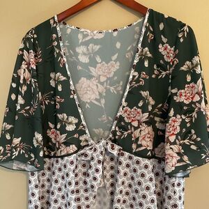 NWOT Women’s blouse/coverup size XL green & white, ties under chest, super cute & flowy!