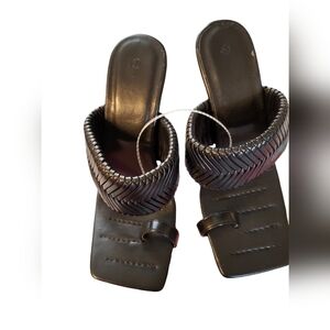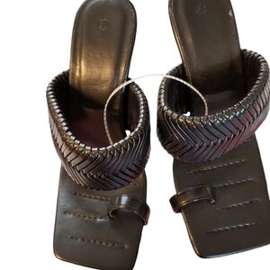NWOT Women's braided heeled ,6.5 mule,squared open toe slide on
